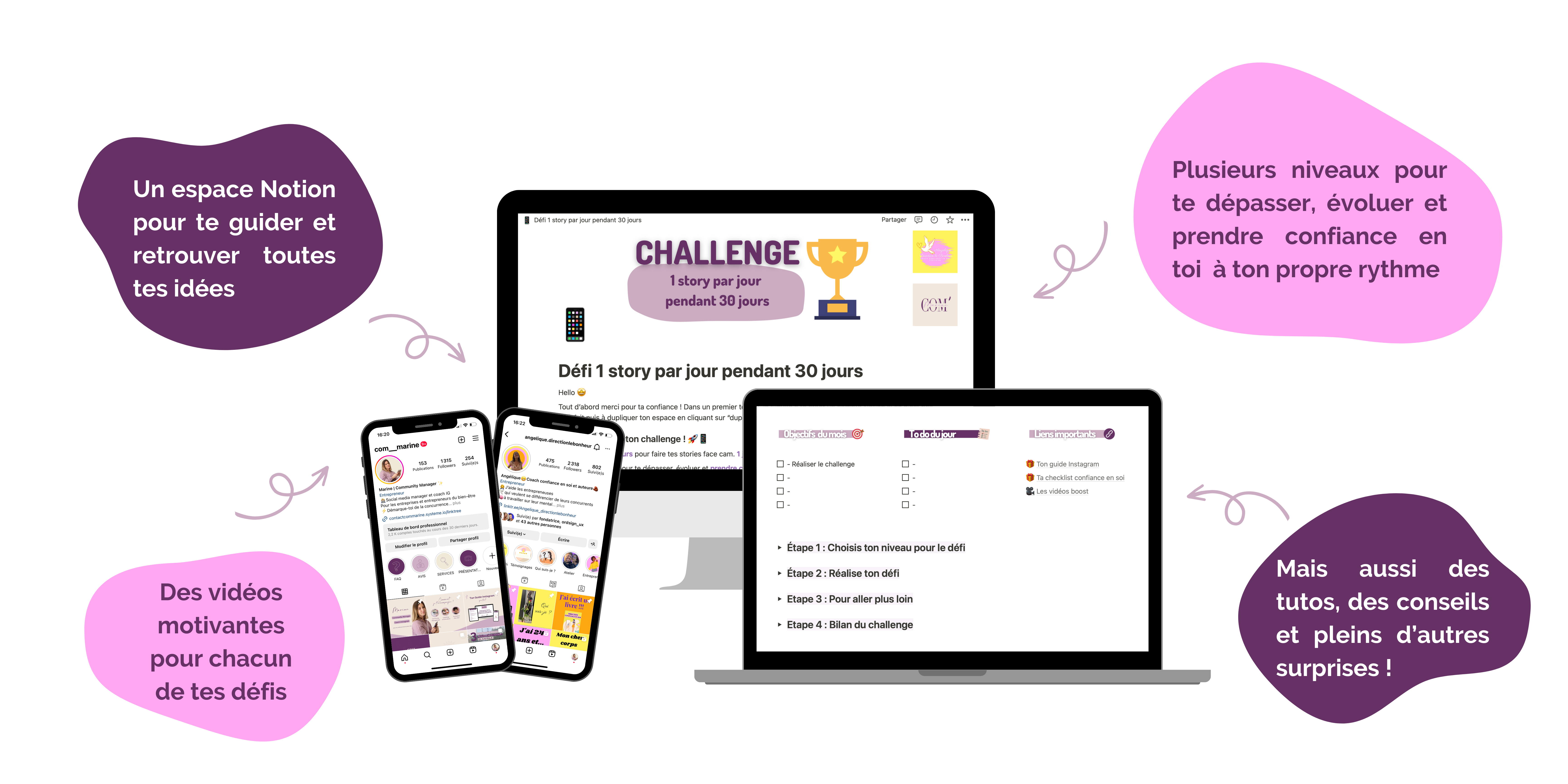 ➡️ Oser te vendre ➡️ Dépasser tes craintes des stories face cam ➡️ Créer un lien de confiance avec ton audience ➡️ Level up tes stories ➡️ Booster ton compte Instagram ➡️ Te challenger